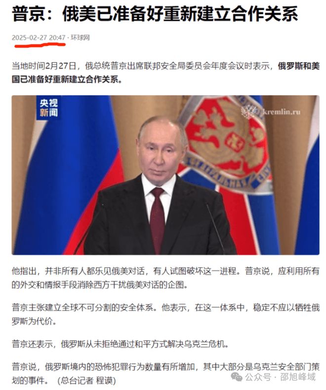 综合,有点把大帝逼迫的样子,逼迫的因素,前面大概都谈过,一个美国的综合战略在推进、包括对俄罗斯的,一个是美国已经和乌克兰签署资源协议,一个是欧洲的德国已经转向强硬(其经济欧洲第一、世界第三)、欧洲全面强军已成大势,欧洲还准备向乌克兰进驻军力,再一个是俄罗斯经济社会问题确实快到爆发点了。