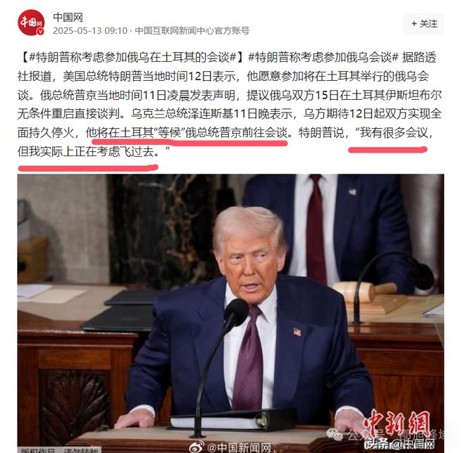 正在中东3国访问和捞金(可能逼中东3国买两三万亿美元的东西)的特朗普也称,可能会前往土耳其和普京会面。